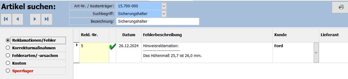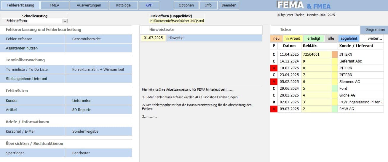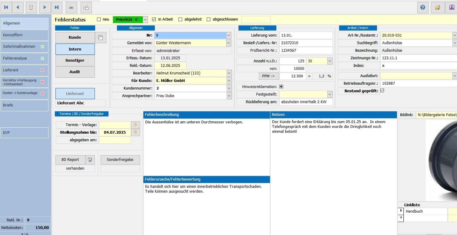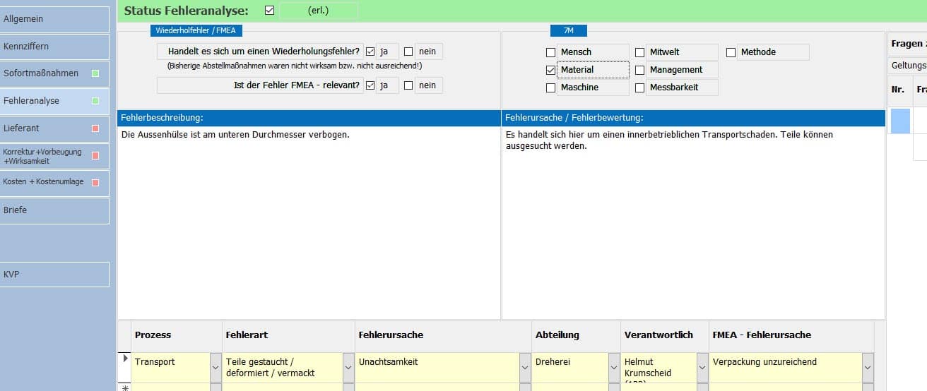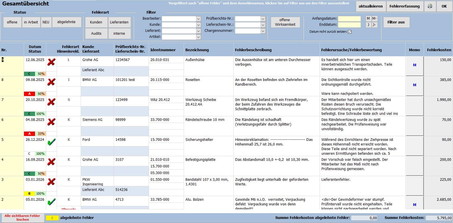 - Erfassung von Kunden- und Lieferantenreklamationen sowie interner Fehler