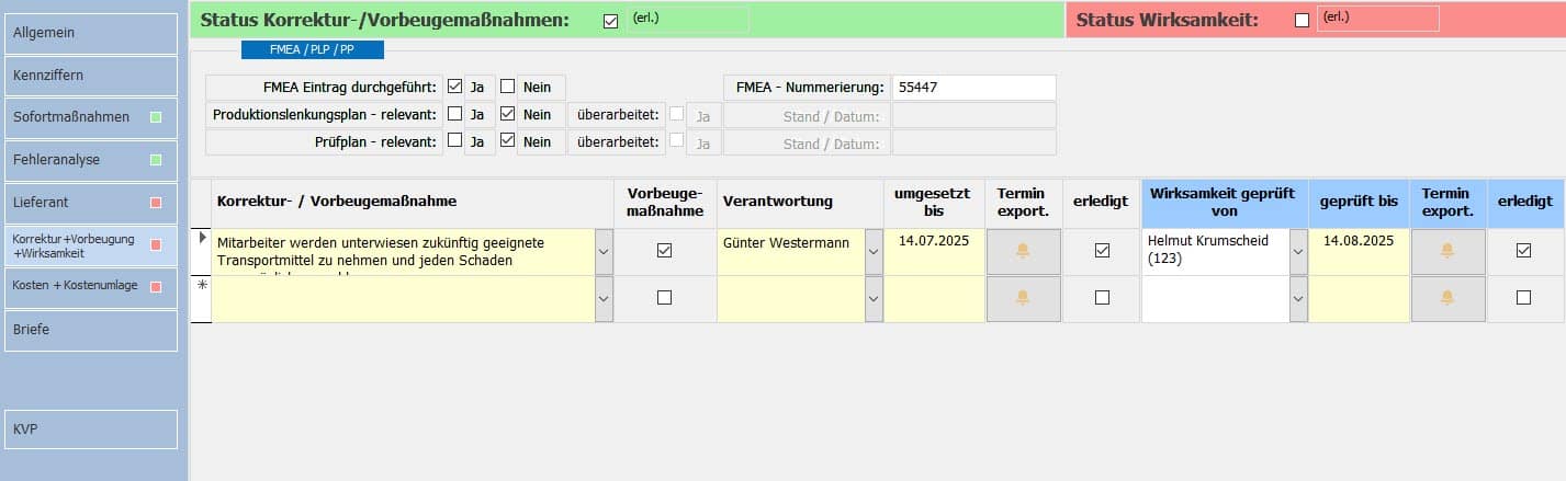 - Korrekturmaßnahmen werden dokumentiert und auf Wirksamkeit kontrolliert