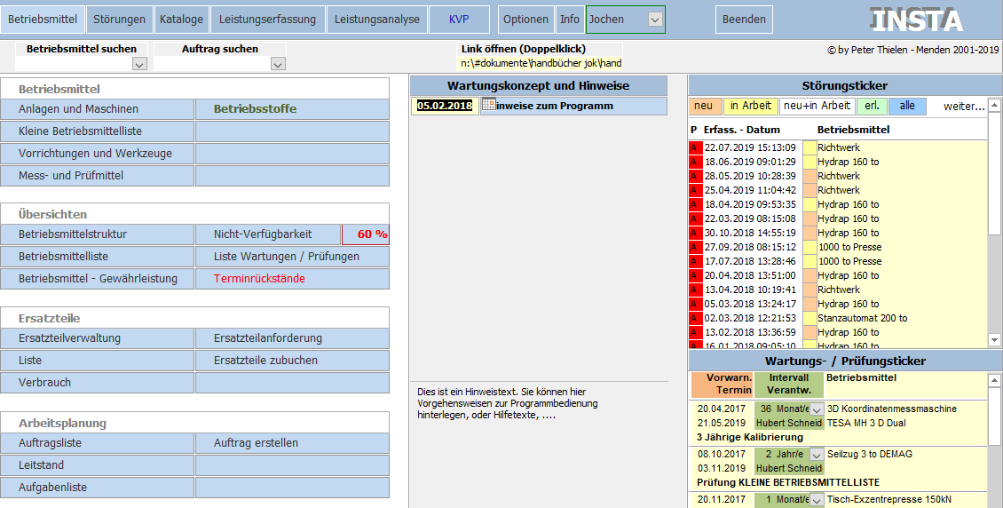 INSTA offers the following functions: </Display of inspection and maintenance dates In the history, machine maintenance and repairs carried out are completely documented. and maintenance plans